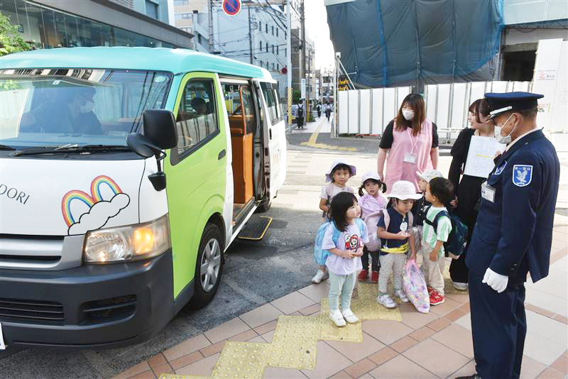 ステーションの送迎バスには、緊急通報ボタンや置き去り防止ブザーが設置されています。出発・到着時には警備員と職員が見守りますので、安心してご利用いただけます。